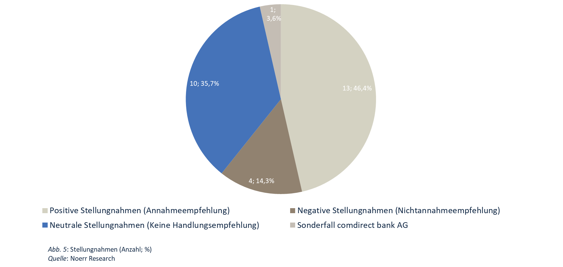 Im Jahr 2019 veröffentlichten die Organe von Zielgesellschaften insgesamt 28 begründete Stellungnahmen nach § 27 WpÜG, entsprechend der Zahl der veröffentlichten 28 Angebote.