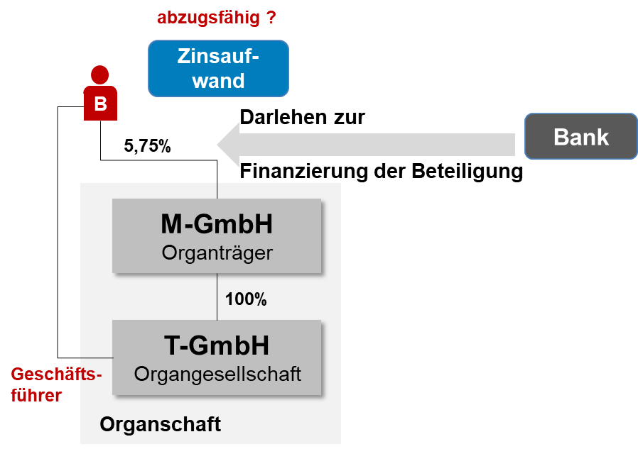 Fraglich ist, ob diese Rechtsprechung auch auf die aktuelle Gesetzesfassung anzuwenden ist. Insoweit besteht hier eine erhebliche Unsicherheit, ob der BFH heute in gleich gelagerten Fällen ähnlich entscheiden würde. Will man dieser Thematik aus dem Weg gehen, könnte überlegt werden, die Geschäftsführung der Gesellschaft zu übernehmen, an der die Beteiligung unmittelbar besteht. Alternativ könnte auch in Betracht gezogen werden, die Beteiligung in einer gewerblichen Einheit zu halten. In diesen Fällen käme ohnehin nur das Teileinkünfteverfahren zur Anwendung und die Finanzierungsaufwendungen könnten zu 60% abgezogen werden.