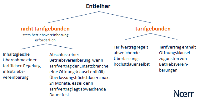 Entleiher sind daher gehalten, die relevante Tariflandschaft zu beobachten oder, wo möglich, betriebliche Sonderregelungen im Wege einer Betriebs- oder Dienstvereinbarung festzulegen.
