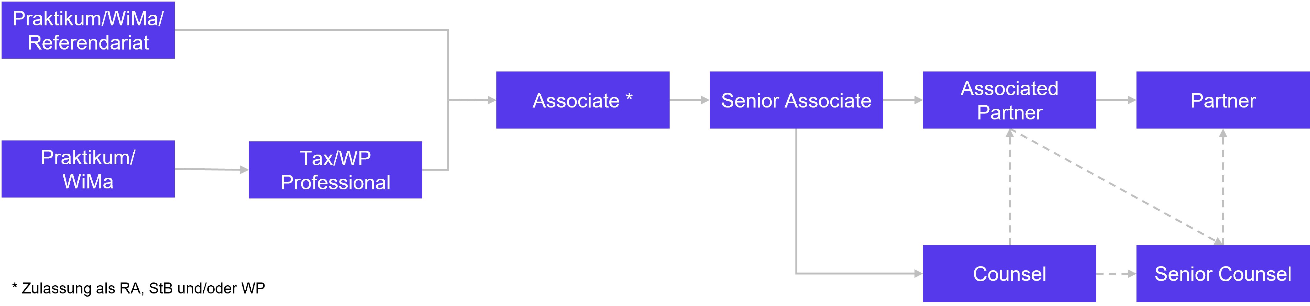 JUVE Awards Steuern, 2023In unserem Bereich Tax & Private Clients bieten wir Karrierewege für Jurist/innen, für Bewerber/innen mit wirtschaftswissenschaftlichem Studium und für Rechtsanwält/innen, Steuerberater/innen sowie Wirtschaftsprüfer/innen. Als eine der führenden europäischen Wirtschaftskanzleien – nach Wachstum und Mandantenstamm ganz sicher die spannendste – suchen und entwickeln wir Talente und Persönlichkeiten wie dich und bieten dir dazu einen Karrierepfad mit folgenden Stationen: