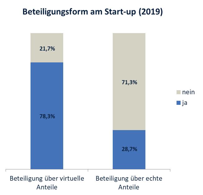 Nach Angabe des Deutschen Start-up Monitors 2019 werden Virtuelle Beteiligungen deutlich häufiger genutzt als Echte Beteiligungen:
