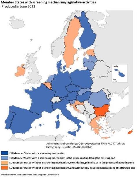 Although the introduction of a national screening mechanism is within the discretion of Member States and remains optional, the Commission has not hesitated to underline its importance on several occasions. Most EU Member States have since adopted a national screening mechanism or are in the process of establishing one. Bulgaria and Cyprus are currently the only exceptions.