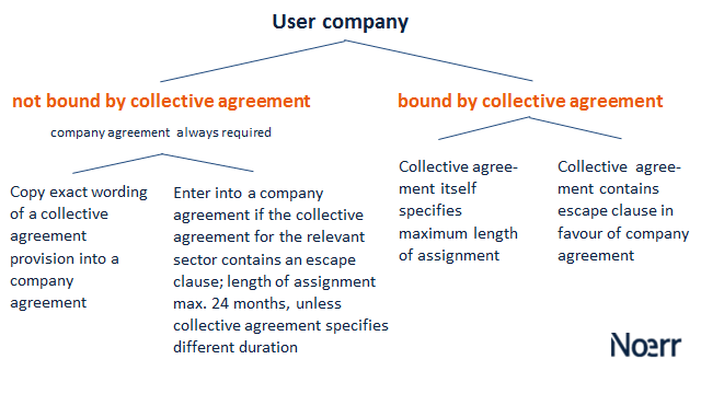 Thus, user companies would be wise to monitor relevant collective bargaining regimes or, where possible, set down special company rules in a company agreement or services agreement.